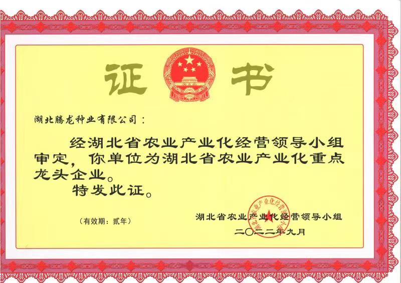 2022省龍頭企業(yè)證書