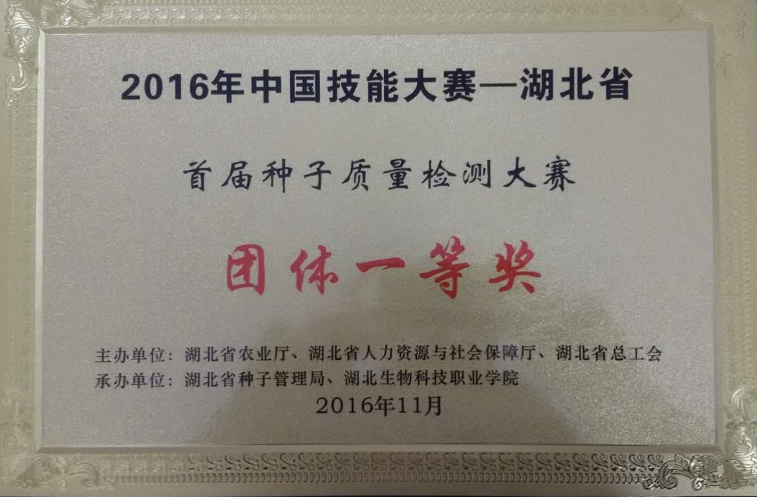 湖北省首屆種子質量檢測大賽團體一等獎
